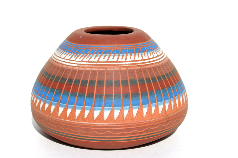 *** Paint geometric shapes such as triangles, diamonds and squares to create a pot similar to the Navajo-style pottery.