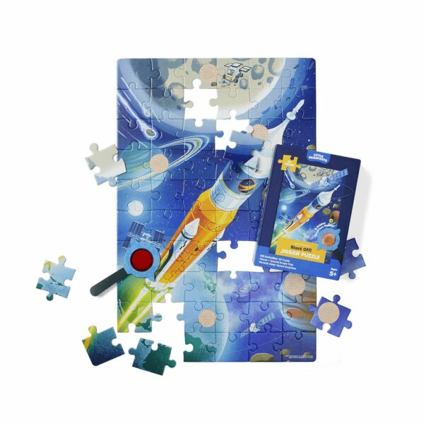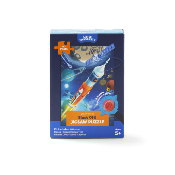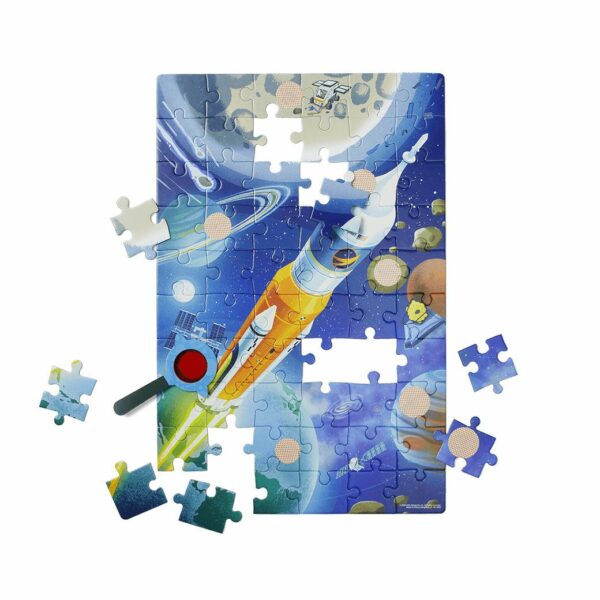 Blast off to discovery with this 60-piece hidden surprises puzzle for kids 5 and older! Kids build critical thinking skills as they create a galactic panorama piece by piece, then cultivate curiosity exploring the cosmos with a special scope to reveal hidden pictures.