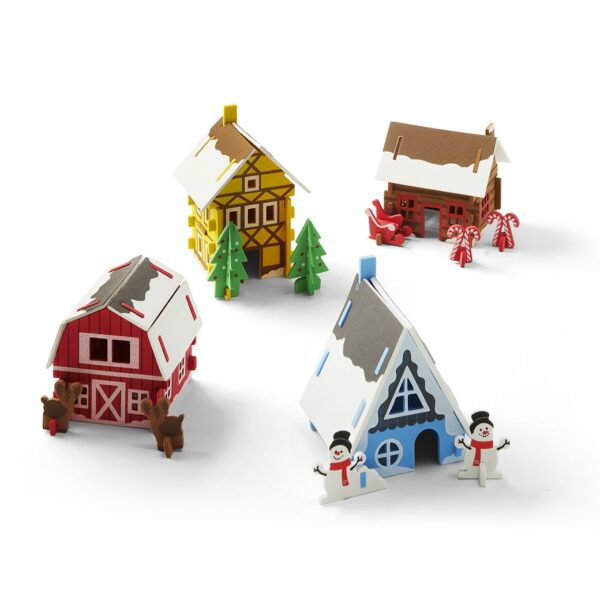 Make 4 homes inspired by classic designs from around the world in this DIY holiday decorating kit. First, discover global architecture and holiday traditions as you construct a German timber-frame house, a gambrel-roof barn from New England, a Polish log cabin, and a Swiss A-frame cabin.
