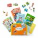 - Five puzzles with original art featuring the ocean, space, world foods, and more